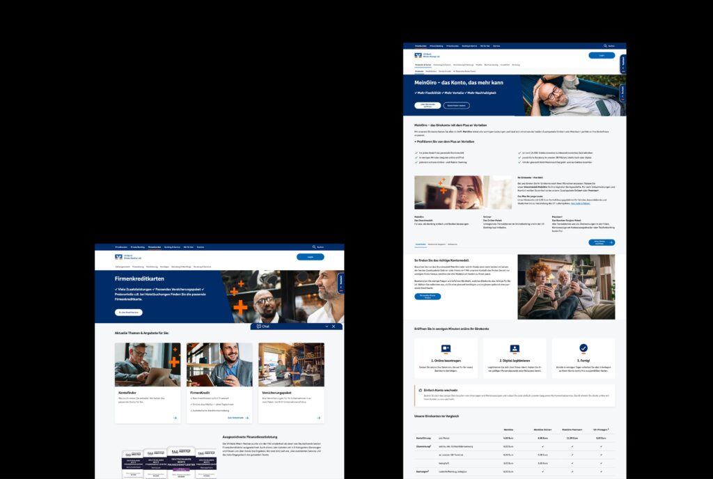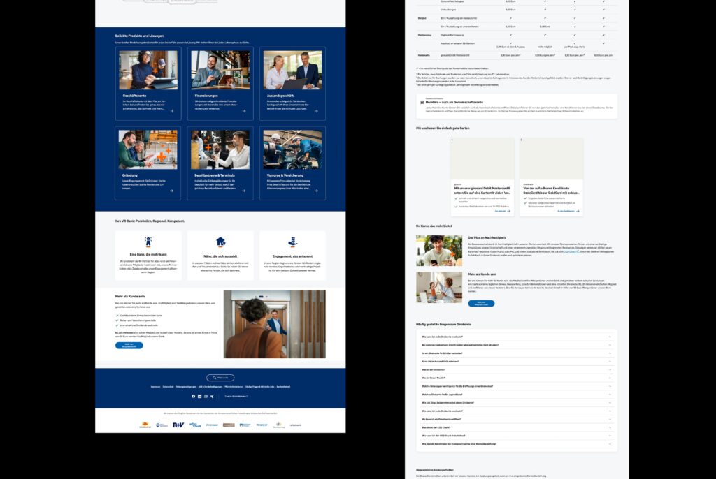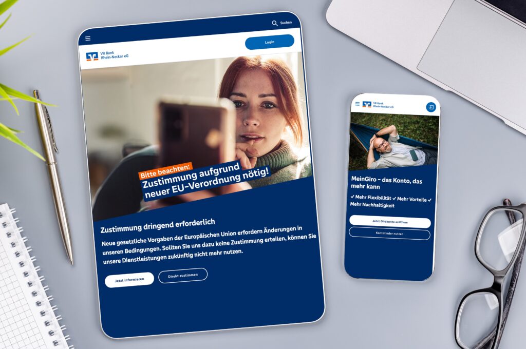 Dafür entstanden zwei zielgruppenspezifische Mailings – eines für Privatkunden, eines für Geschäftskunden – die den Anlass klar erklärten und den Weg zur Zustimmung so einfach wie möglich machten. Ergänzend entwickelten wir eine Landingpage, die auf bestehenden Templates der Bank basierte. Texte, Bildwelten und Layout kamen von uns, die technische Umsetzung erfolgte im CMS der VR Bank.